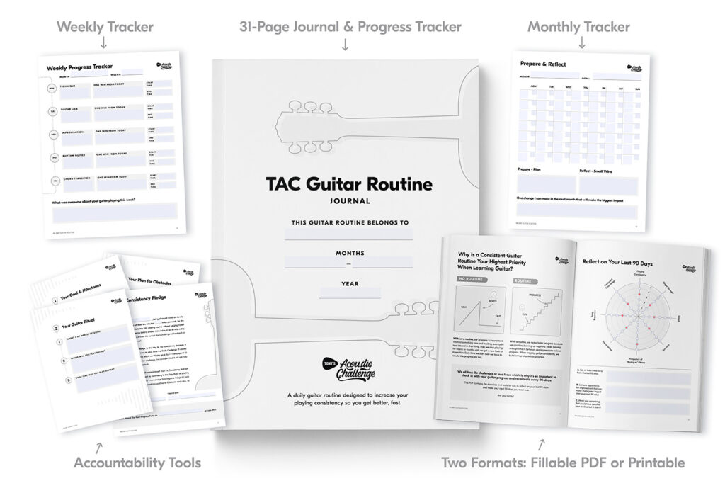 Every three months, inside the Daily Challenge, Tony will coach you through our Guitar Enjoyment Audit* using the Guitar Routine Journal™.