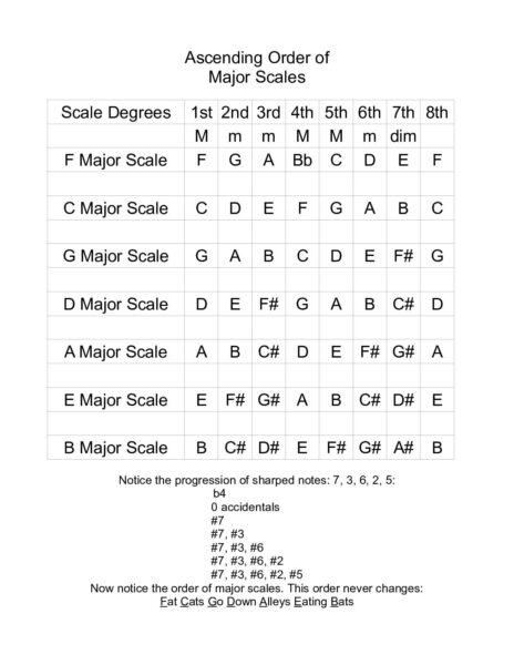 Make sure you download that chart I gave you and study it. It is the circle of 5ths in a more understandable form. The problem with the circle of 5ths is that it’s like a code. If you can understand the code, then you can remember it and you don’t need the code.
