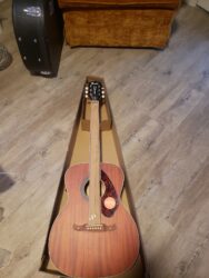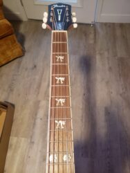I am proud to announce that yesterday my girlfriend and I went out shopping for supplies and we unexpectedly found a guitar center. I came across a Fender Tim Armstrong Hellcat. I was immediately attracted to it like a moth to a flame, began playing it, and then fell in love with the sound and vibration that it made. Finally, I took a good look at it and “Wow” – I was astonished by the amount of detail it has. It has a mahogany body with a white trim going all around it and 2 skulls plus 4 cats designed on the neck, so I took it home with me and took pictures of every moment of me unwrapping my guitar. I hope that everyone will get to experience and enjoy the first moments of unwrapping and getting a new guitar.