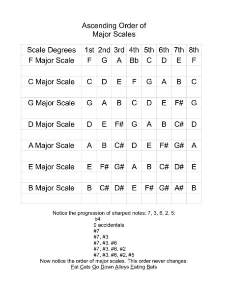 See, @Cadgirl , that’s why I’m going to do my Music Theory for the Beginning video series. That list is misleading and a crutch. If presented properly, it becomes easy to remember. This is the “proper” order of the major scales. This order, F, C, G, D, A, E, B, is the same for the modes as well as the accidentals. There are different acronyms, but once you see how to apply the acronym, you don’t need charts or circle of fifths. Everything is in the same order, always.